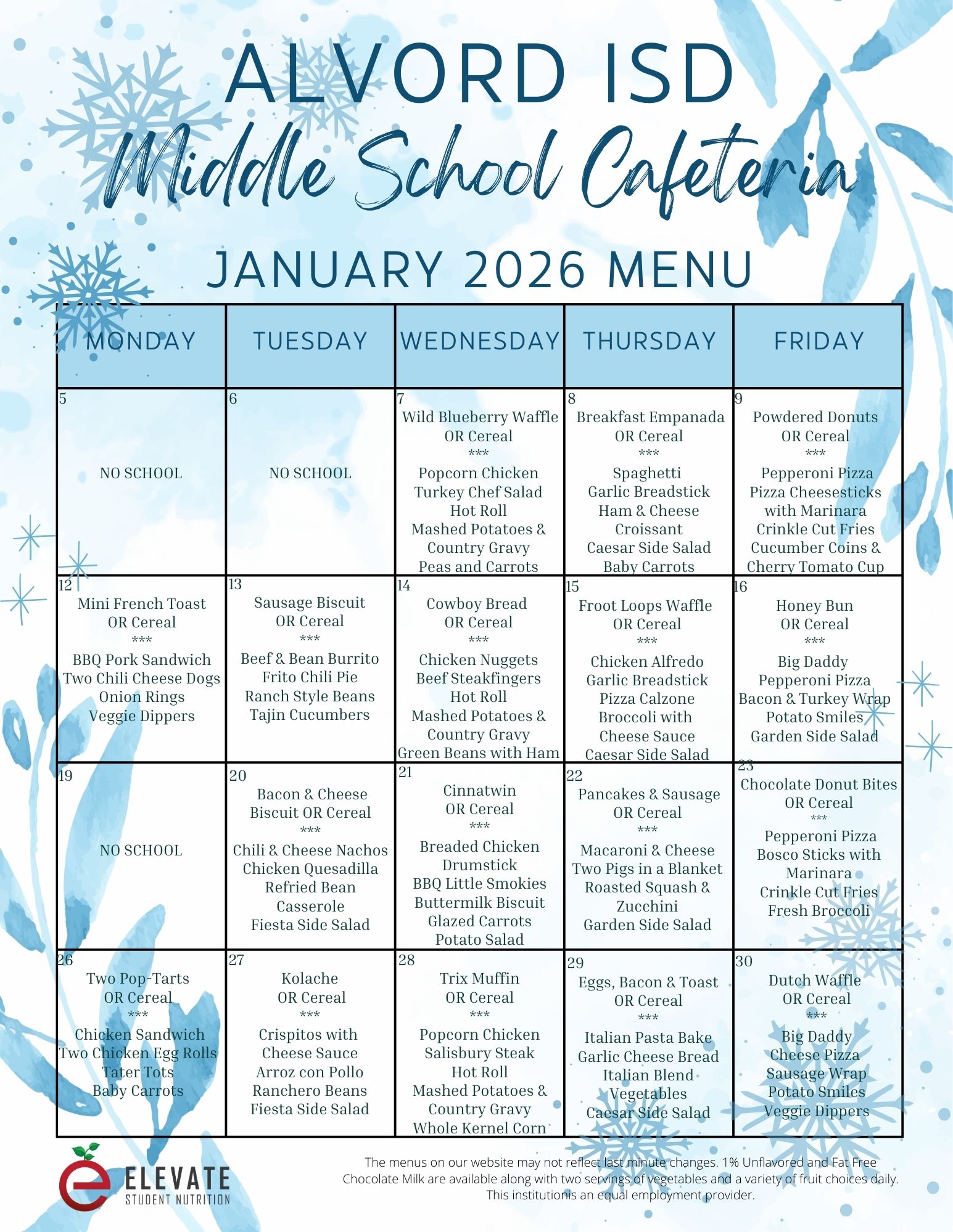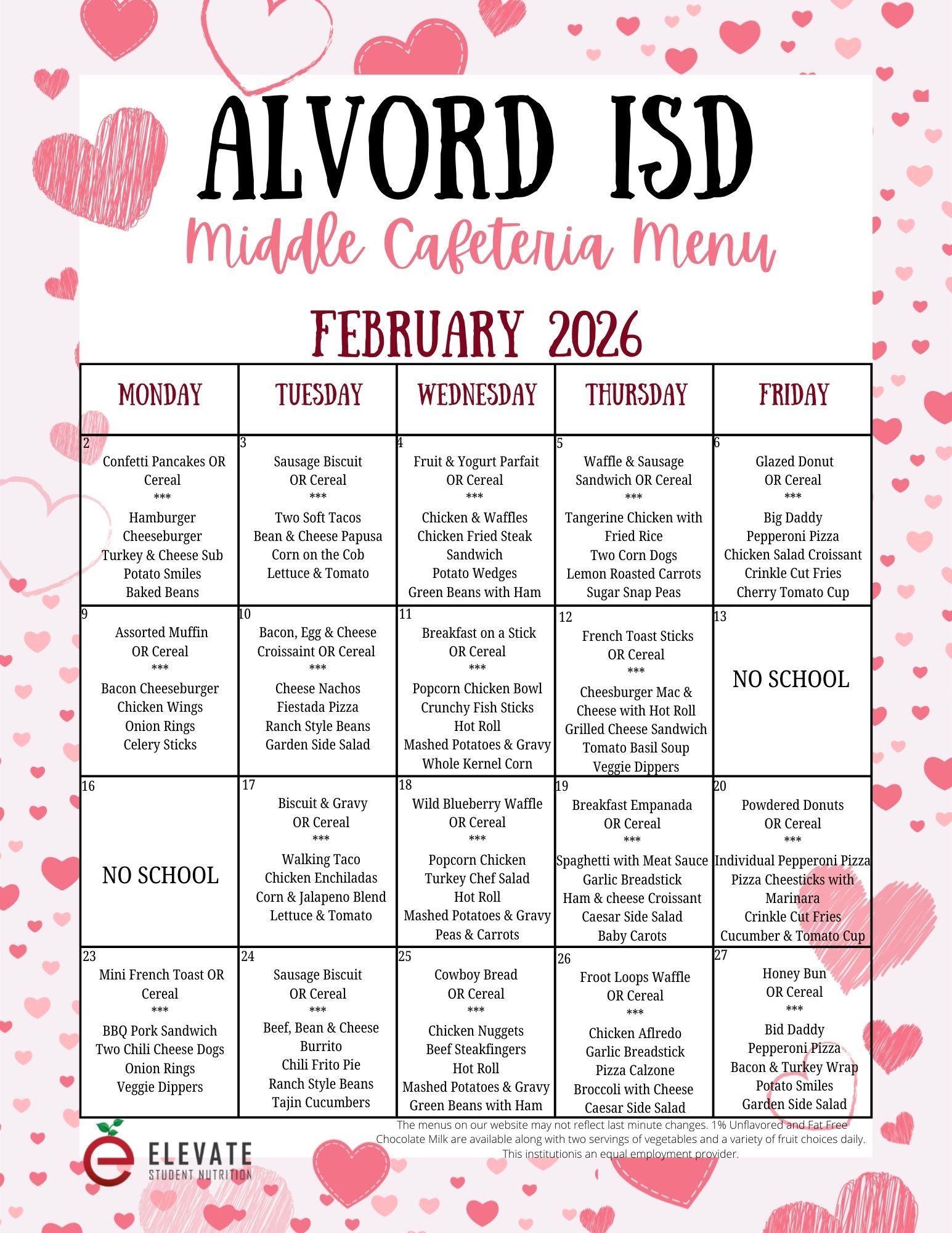 Free and Reduced Meal Applications for meal benefits can be picked up at any campus office, cafeteria or email smcdaniel@alvordisd.net for the 2025-26 school year.